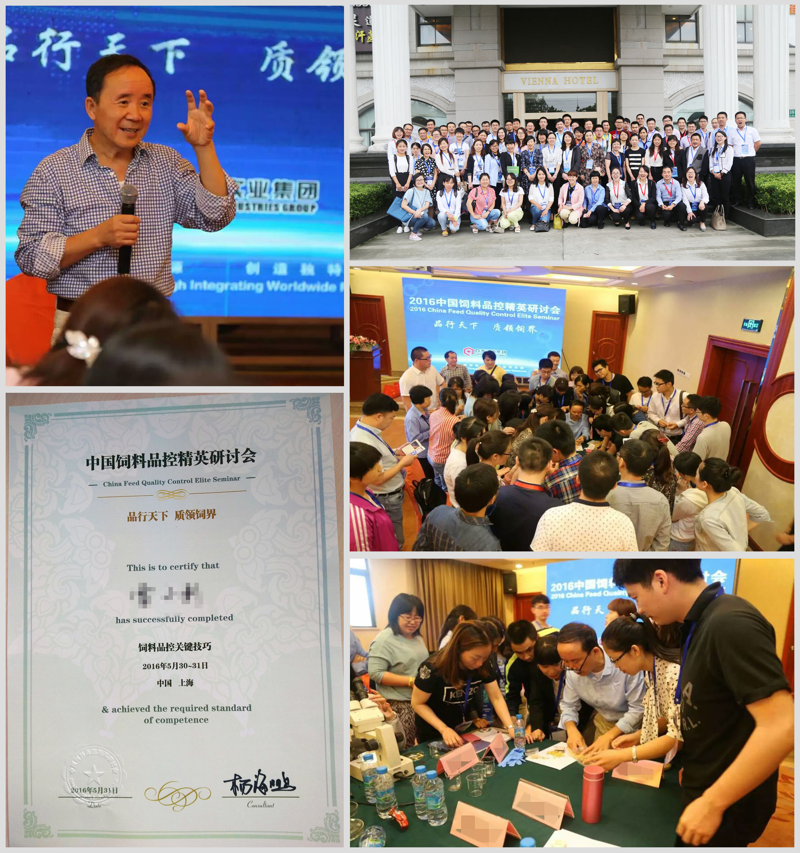 2016年5月30-31日,我司品控人員參加2016中國飼料品控精英研討會。會議上國家飼料檢測中心首席研究員楊海鵬老師就新形勢下飼料企業品控關鍵點做了深入講解,同時還教授了飼料原料鏡檢要領,并在現場親自演示鏡檢操作與原料鑒別。