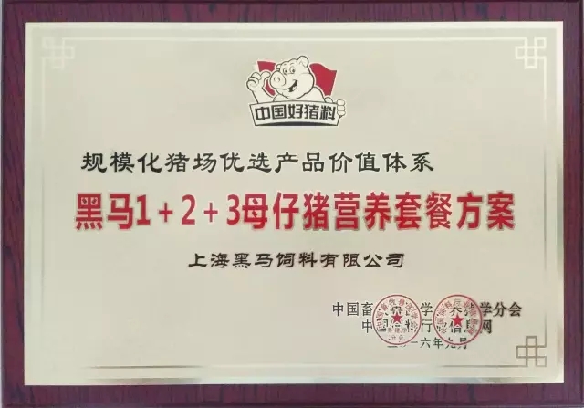 2016年9月4日,由中國畜牧獸醫學會養豬學分會和中國飼料行業信息網主辦的“第四屆母仔豬大會”暨“中國好豬料·第四季”頒獎盛典在北京溫都水城拉開帷幕。我司的“1+2+3母仔豬營養套餐方案”獲得“規模化豬場優選產品價值體系”榮譽稱號。