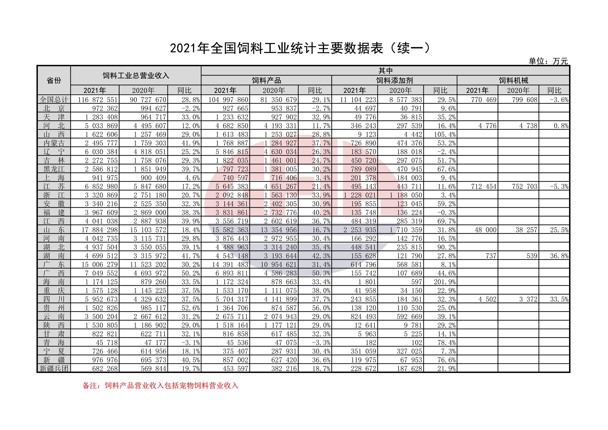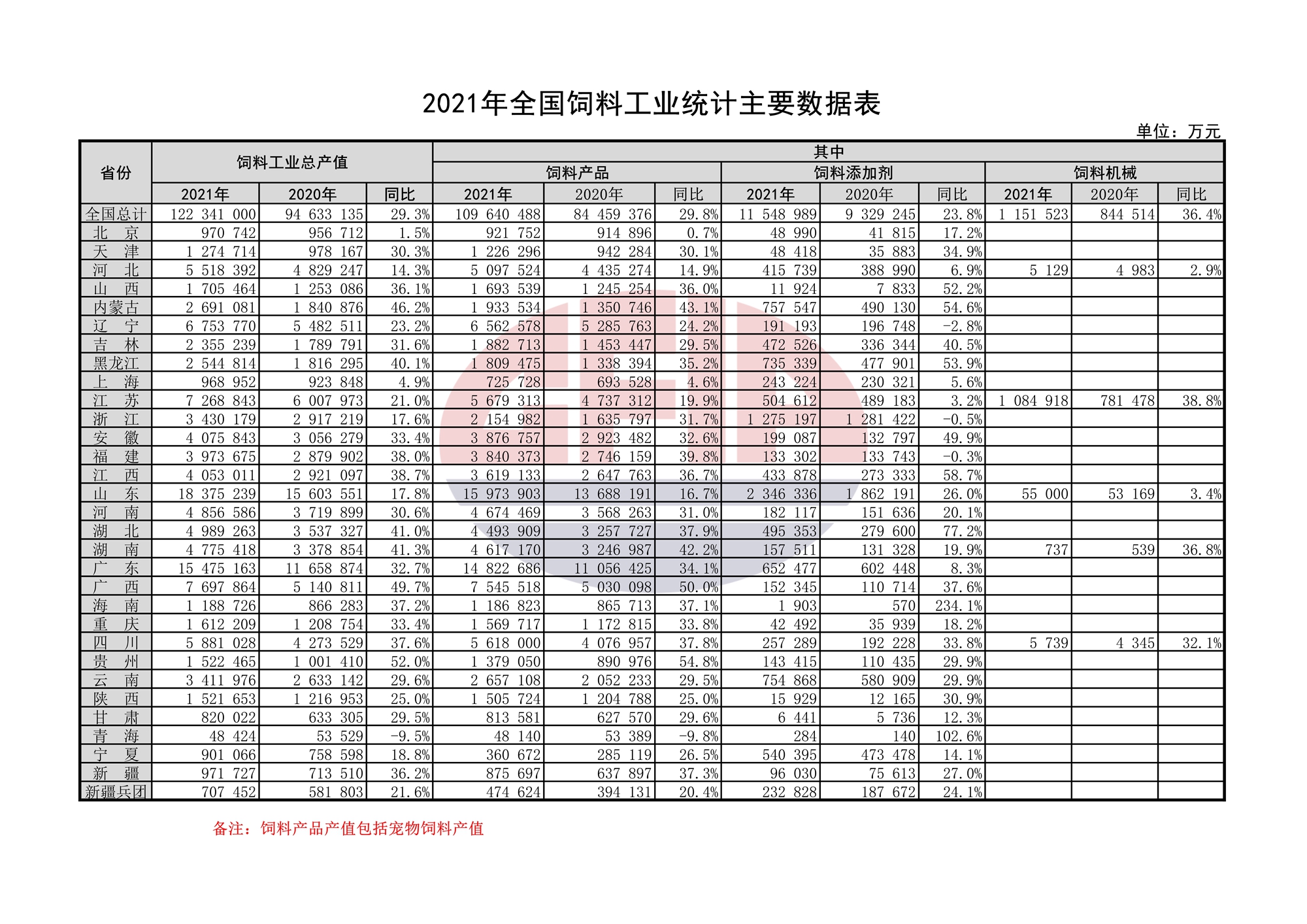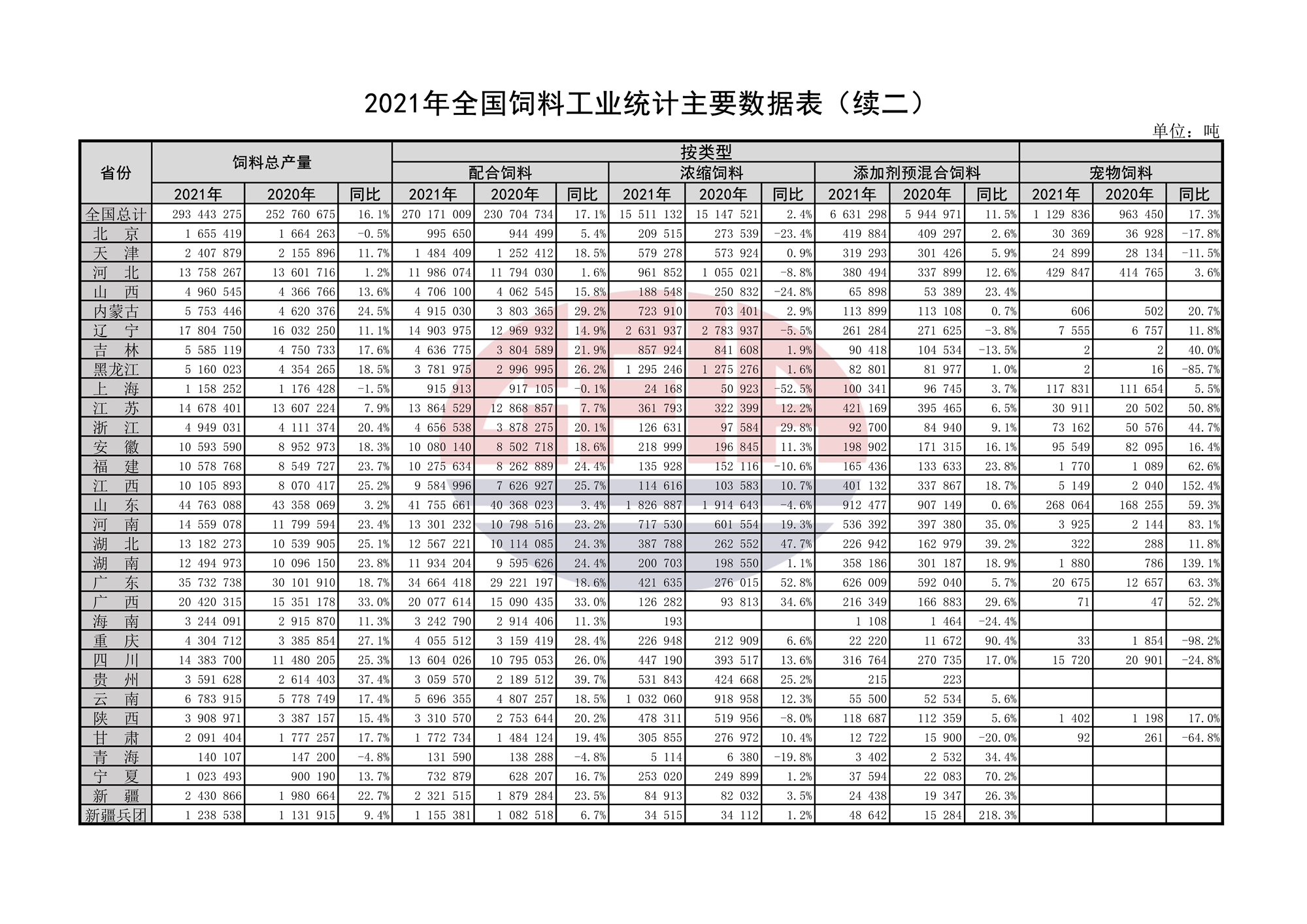 2021年全國(guó)飼料工業(yè)統(tǒng)計(jì)主要數(shù)據(jù)表