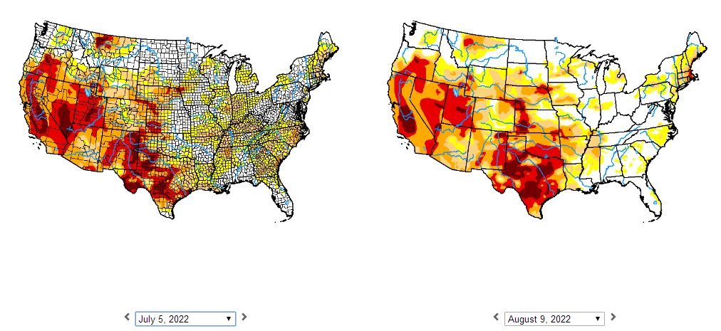 圖3:美國(guó)7月初與8月初干旱監(jiān)測(cè)