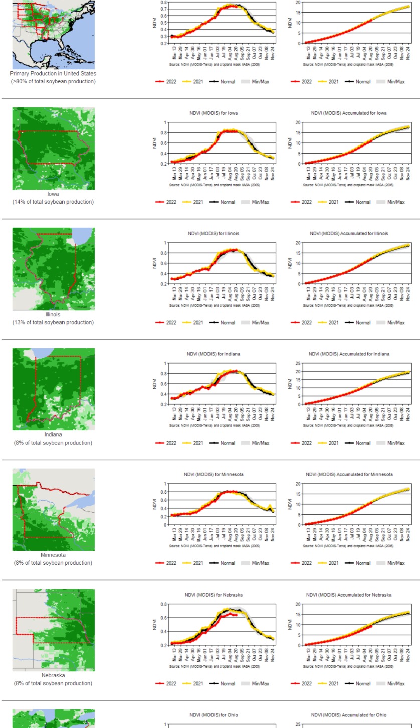 5.大豆豆粕:目前中國(guó)和美國(guó)大部分大豆產(chǎn)區(qū)氣溫和降水正常,利于大豆生長(zhǎng)。干旱對(duì)美國(guó)和中國(guó)大豆產(chǎn)量影響不大。