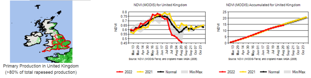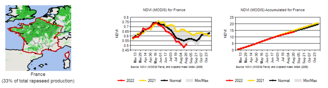 7.菜系:歐盟及英國(guó)干旱對(duì)菜籽播種產(chǎn)生影響,如果干旱持續(xù)到9月中旬,歐盟及英國(guó)菜籽播種面積可能大幅下滑,而歐盟和英國(guó)的菜籽產(chǎn)量占全球比重是全球第二,因此影響較大,如果9月中旬前歐盟及英國(guó)沒有有利降雨,菜系品種可能得到強(qiáng)支撐,可能帶動(dòng)整個(gè)粕類和油脂,不過如果歐盟和英國(guó)能迎來降雨,那么可能是菜系較好的做空機(jī)會(huì)。