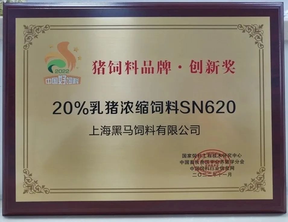 我司20%乳豬濃縮料SN620產(chǎn)品榮獲“中國(guó)好飼料2022——豬飼料品牌·創(chuàng)新獎(jiǎng)”。