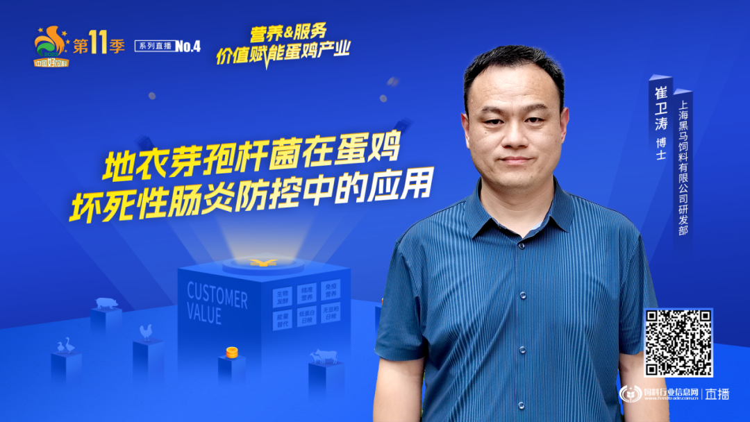 我司研發部崔衛濤博士,為大家分享了《地衣芽胞桿菌在蛋雞壞死性腸炎防控中的應用》。