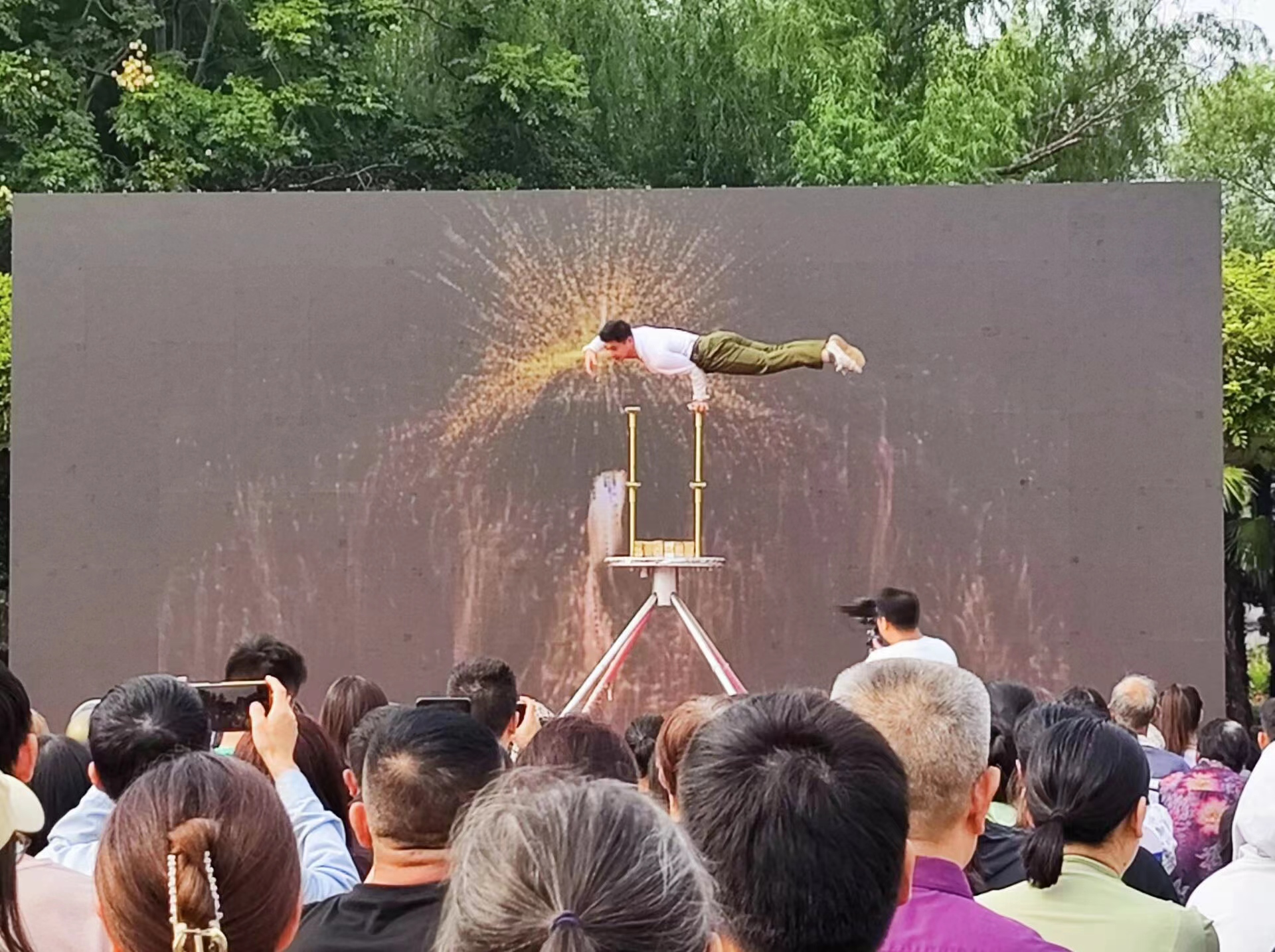 本次活動(dòng)是由上海市總工會指導(dǎo),上海市工人文化宮和嘉定區(qū)工會舉辦的華亭專場活動(dòng)。活動(dòng)現(xiàn)場,表演了節(jié)目“只此青綠”,也有川劇有名的“變臉”,還有大家喜聞樂見的歌唱、雜技和魔術(shù)等傳統(tǒng)節(jié)目。