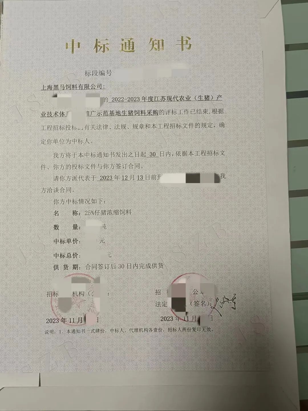 喜報(bào) | 我司成功中標(biāo)江蘇現(xiàn)代農(nóng)業(yè)飼料采購(gòu)項(xiàng)目