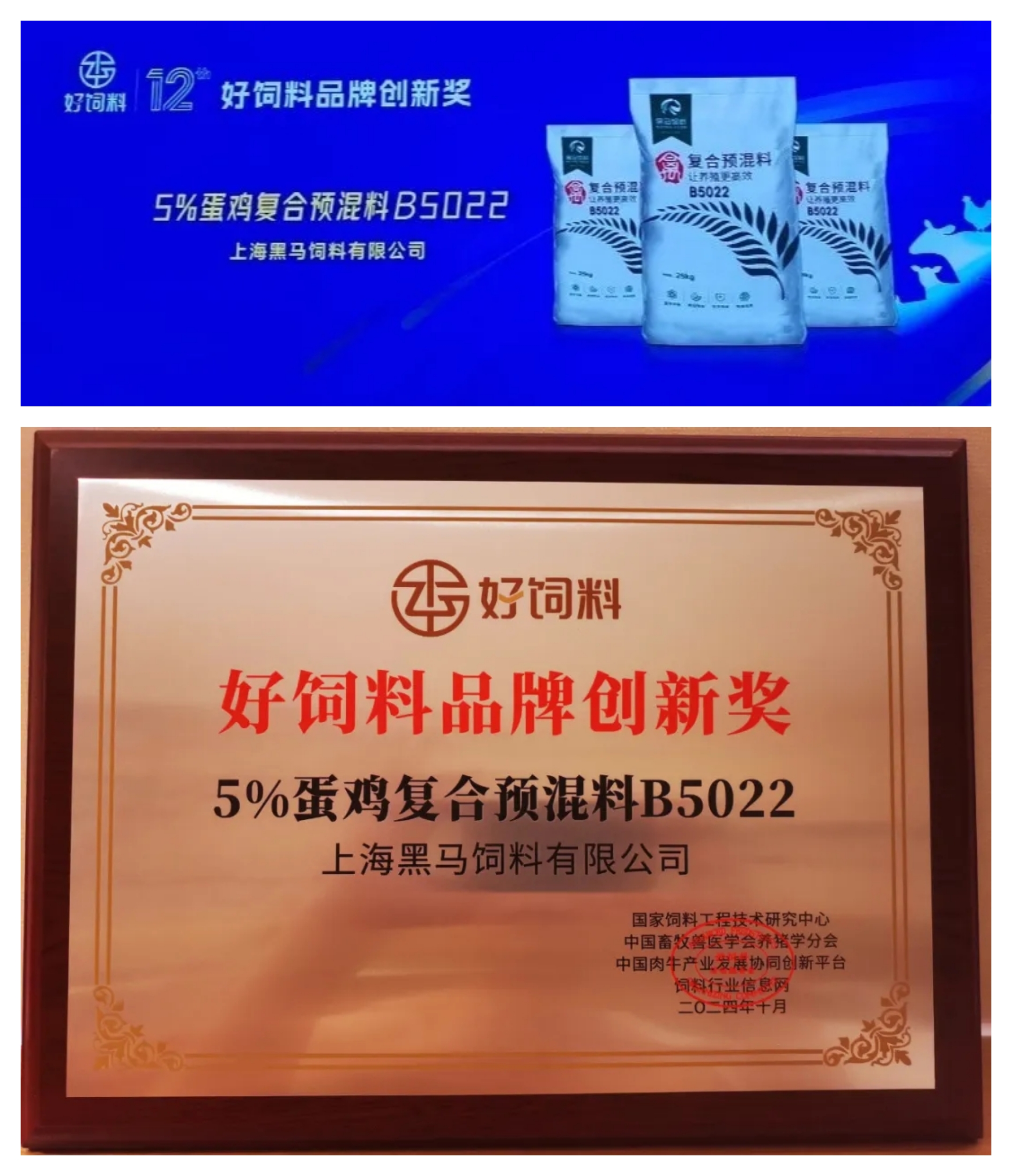 我司5%蛋雞復合預混料B5022產(chǎn)品榮獲“中國好飼料2024——好飼料品牌·創(chuàng)新獎”。