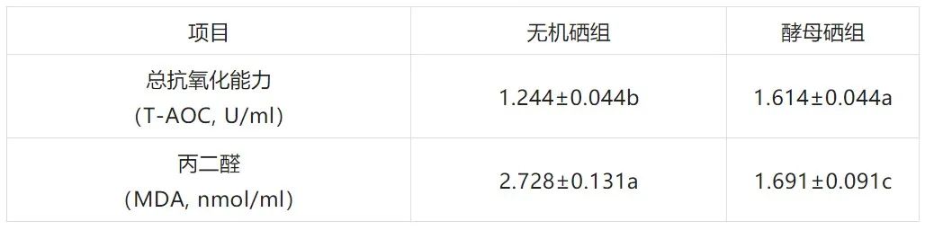 表2 日糧中添加硒對機體抗氧化能力的影響