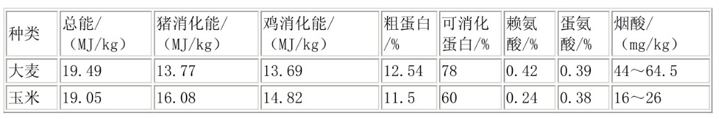 表1 大麥和玉米可消化成分比較